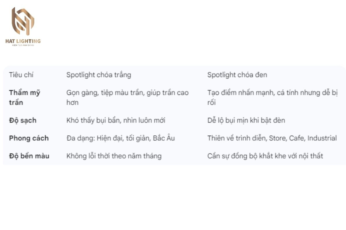 Để bạn có cái nhìn khách quan hơn, HAT Lighting đã lập bảng so sánh nhanh dựa trên trải nghiệm lắp đặt thực tế: